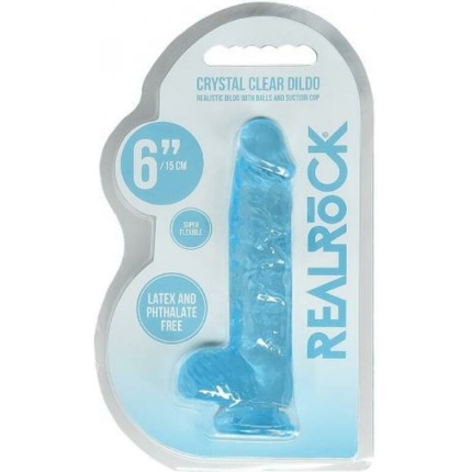 Realrock Crystal Clear Realistic Dildo With Balls 6 In. Blue