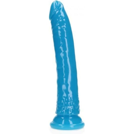 Realrock Glow In The Dark Slim 10 In. Dildo Neon Blue