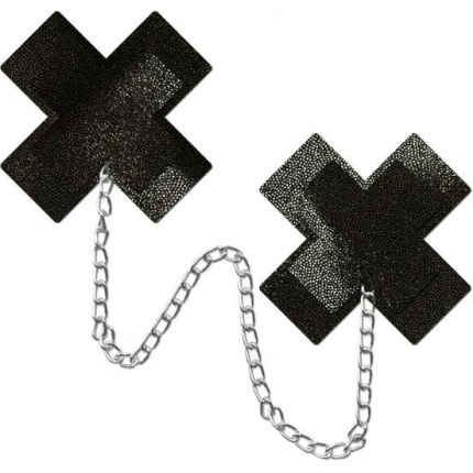 Pastease Chains Liquid Black X Cross W/ Chunky Silver Chain Nipple Pasties