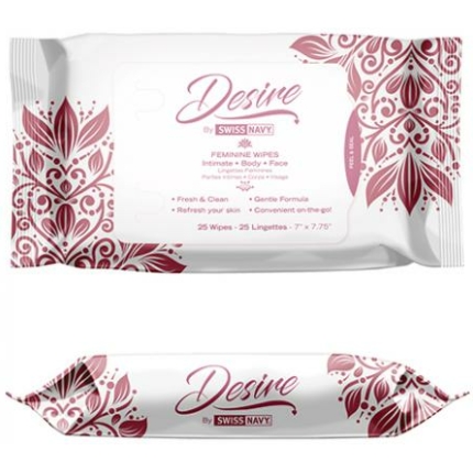 Swiss Navy Desire Unscented Feminine Wipes 25ct One Pack