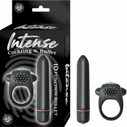 Intense Cockring And Bullet 10 Function Bullet Waterproof Black