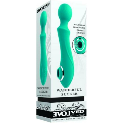 Evolved Wanderful Sucker Rechargeable Wand With Suction Silicone Teal