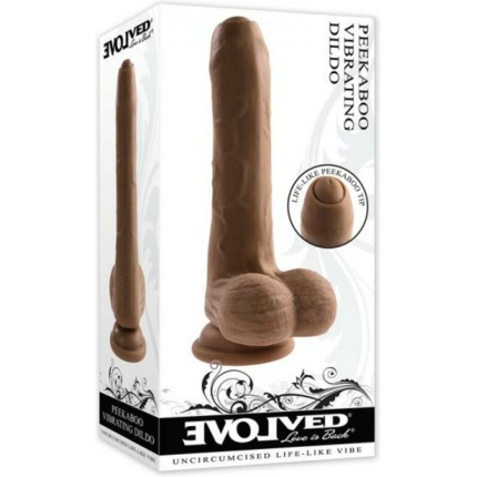 Evolved Peek A Boo Rechargeable Vibrating 8 In. Silicone Uncircumcised Dildo With Power Boost Dark