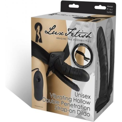 Unisex Vibrating Hollow Double Penetration Strap-On Dildo Black