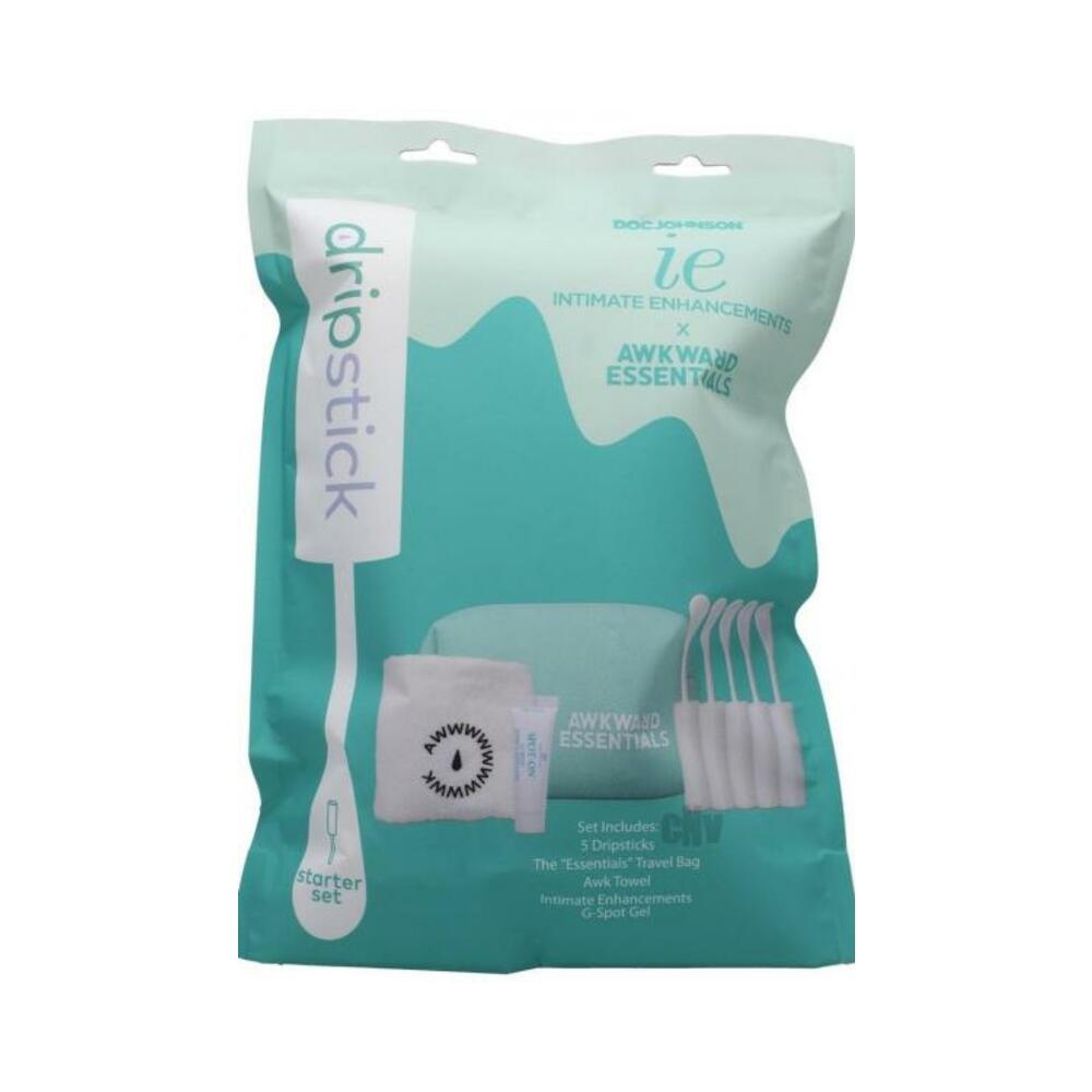 Everything you need for a busy weekend! The Starter Set includes 5 dripsticks designed to absorb excess cum after sex, 1 (not-for-hands) Hand Towel, and a .35 oz tube of Doc Johnson Intimate Enhancements G-Spot Gel, all in a discreet travel bag.