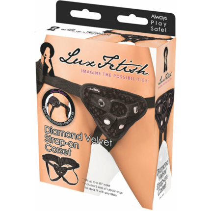 Lux Fetish Diamond Velvet Strap-On Corset Black