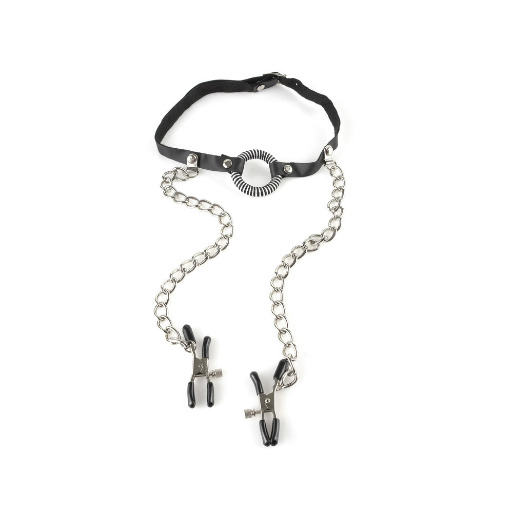 Fetish Fantasy O-Ring Gag With Nipple Clamps
