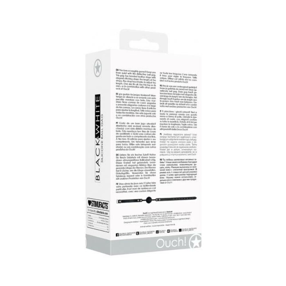 Ouch! Black & White Silicone Ball Gag With Adjustable Bonded Leather Straps Black