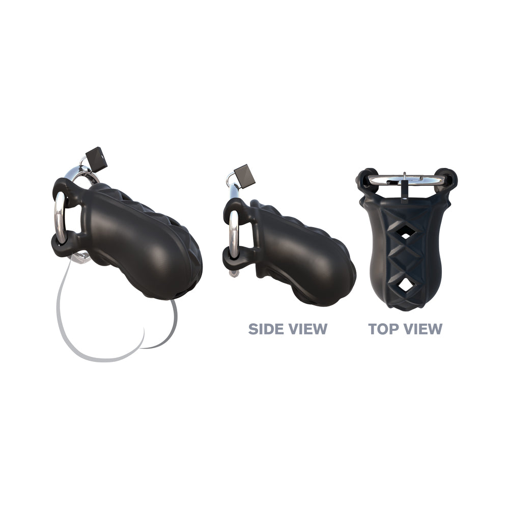 Put your lover on lockdown with the Extreme Silicone Cock Blocker! Fasten the lock, hide the key, and make sure your partner keeps his cock where it belongs! This high-end chastity cage is made from body-safe Silicone and is designed for comfortable long-term wear. The chastity device is lightweight, flexible, and breathable, but once the lock is applied, your subject can’t get hard no matter how aroused they get. Stainless steel adjustable ring wraps around his entire package, leaving his shaft locked inside the breathable silicone sleeve, which includes a small pee-hole to assist urination. The entire device can be worn under clothing. The ultimate chastity device for first-timers and serious fetish enthusiasts.