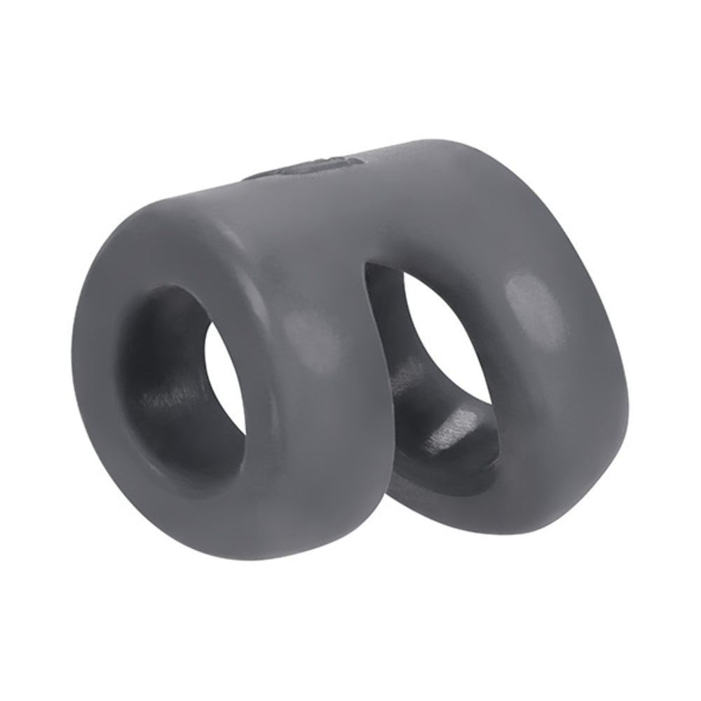 Hunky Junk Connect Cock Ball Tugger from Oxballs. Cock rings are a blast for long jack off play, pulling your balls or tugging your sack can really make stroking feel amazing. Connect Ball Tugger is a cock ring that does the tugging for you. Connect is a cock ring with an attached sack ring for a guys balls. The cock ring is super rubbery and can be worn for long play and the ball ring is the right size to tug most any size sack without digging into you. The 2 rings are attached with a wide connector that acts like a rubbery flexing spring. It is strong enough for plenty of pull, but stretchy enough for a lot of tug. Wear Connect Ball Tugger for play or for a bigger, ballsier bulge. Hunky Junk makes toys that work. There are many cock ring ball ring combinations but none connect the way ours does with rings designed to fit and feel right with a really good tug! Our plus + silicone, Thermoplastic Rubber TPR/silicone blend: silicone for a smooth and warm feel, TPR for amazing stretch and strength. Phthalate free. Stats approximate: width 2 inches, height 2.75 inches, depth 2.25 inches. Main hole circumference 4.25 inches. Shaft hole circumference 3.75 inches. Ball hole circumference 3.5 inches. Bulk weight 1.6 ounces. Color Stone Gray.
