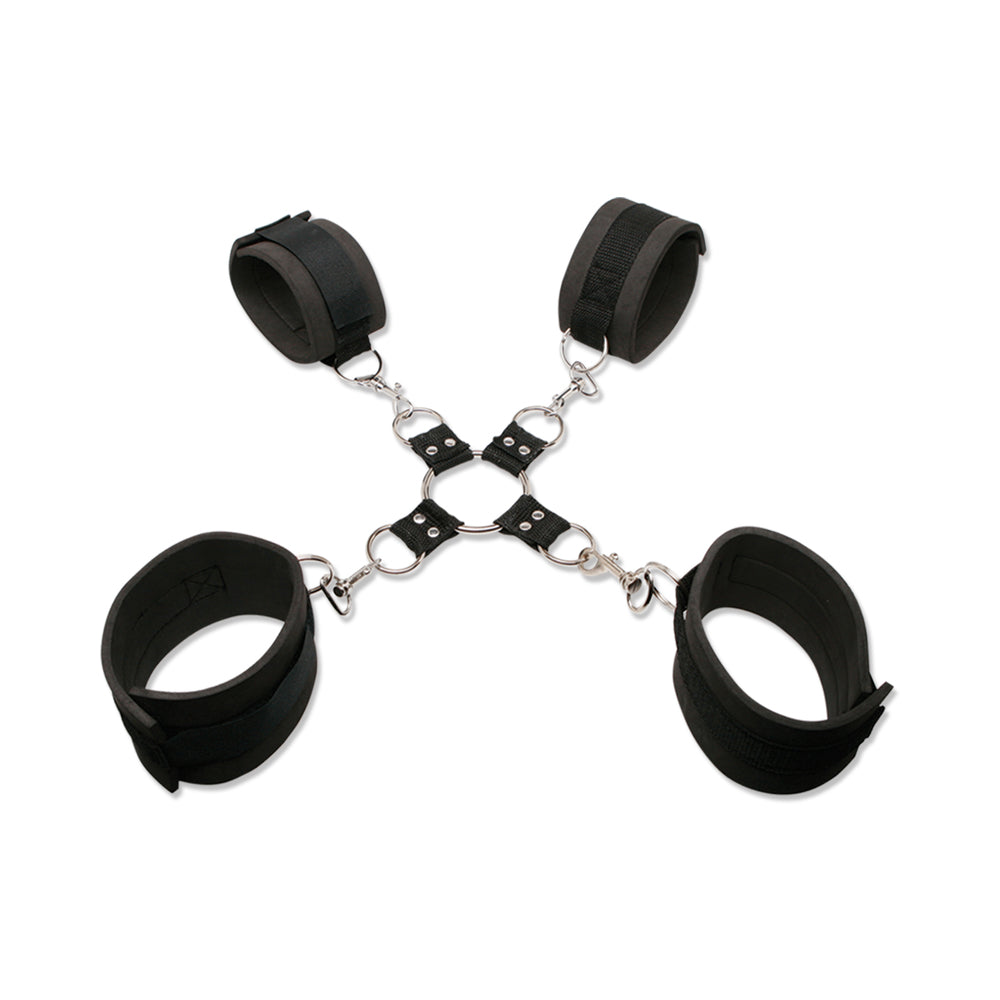 Take total control over your lover’s every move with this Extreme Hogtie Kit. This easy-to-use hogtie kit includes neoprene wrist and ankle cuffs, a heavy-duty metal hogtie, and free satin love mask. Enjoy the the thrill of being hogtied without having to worry about complicated techniques and tying elaborate knots. The cuffs attach to the hogtie with spring-loaded metal clips and easily adjust with velcro to fit most sizes. Once your lover is on their stomach bound and tied, what happens next is up to you!