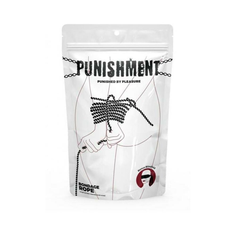 Indulge in your knot-ty side with the Punishment Bondage Rope! Stay at home on your next date night because you`re all tied up!andnbsp; This bondage rope is great for couples looking to explore the exciting world of restraint play.andnbsp; Made from 100% cotton, this rope is soft to the touch, so it`ll be comfortable against the skin whichever way you tie up your partner.andnbsp; With a length of 32 feet, there is a lot of rope to play with, and a lot of knots, positions, and sensations to explore.andnbsp; Tie up ankles, wrists, or legs and explore different positions that you can get into.andnbsp; Play on both sides of the restrain play line by giving up control and letting your partner tie you up or take control and tie them up.andnbsp; Once they`re secure, introduce a blindfold so that their senses are heightened, making every touch, kiss, and tickle that much more intense.andnbsp; Deliver a stinging slap with a naughty paddle or tantalize their skin with a feather tickler.andnbsp; You love watching them writhe in pleasure as you play with their senses.andnbsp; When engaging in bondage or restraint play, be sure to have a safe word so both of you know when the intensity has reached its climax.andnbsp; It`s time to be punished by pleasure with Punishment.andnbsp; Key Features: Bondage Rope 32 Feet Long 100% Cotton Soft Touch Versatile in Use Strong and Durable Bonus Blindfold Included andnbsp; Dimensions: Length: 32 ft. Diameter: 0.28 in.
