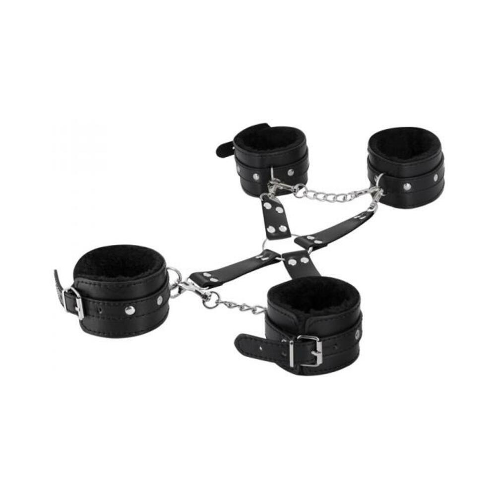 Male Power Leather All 4’s Fuzzy Cuff Set Black