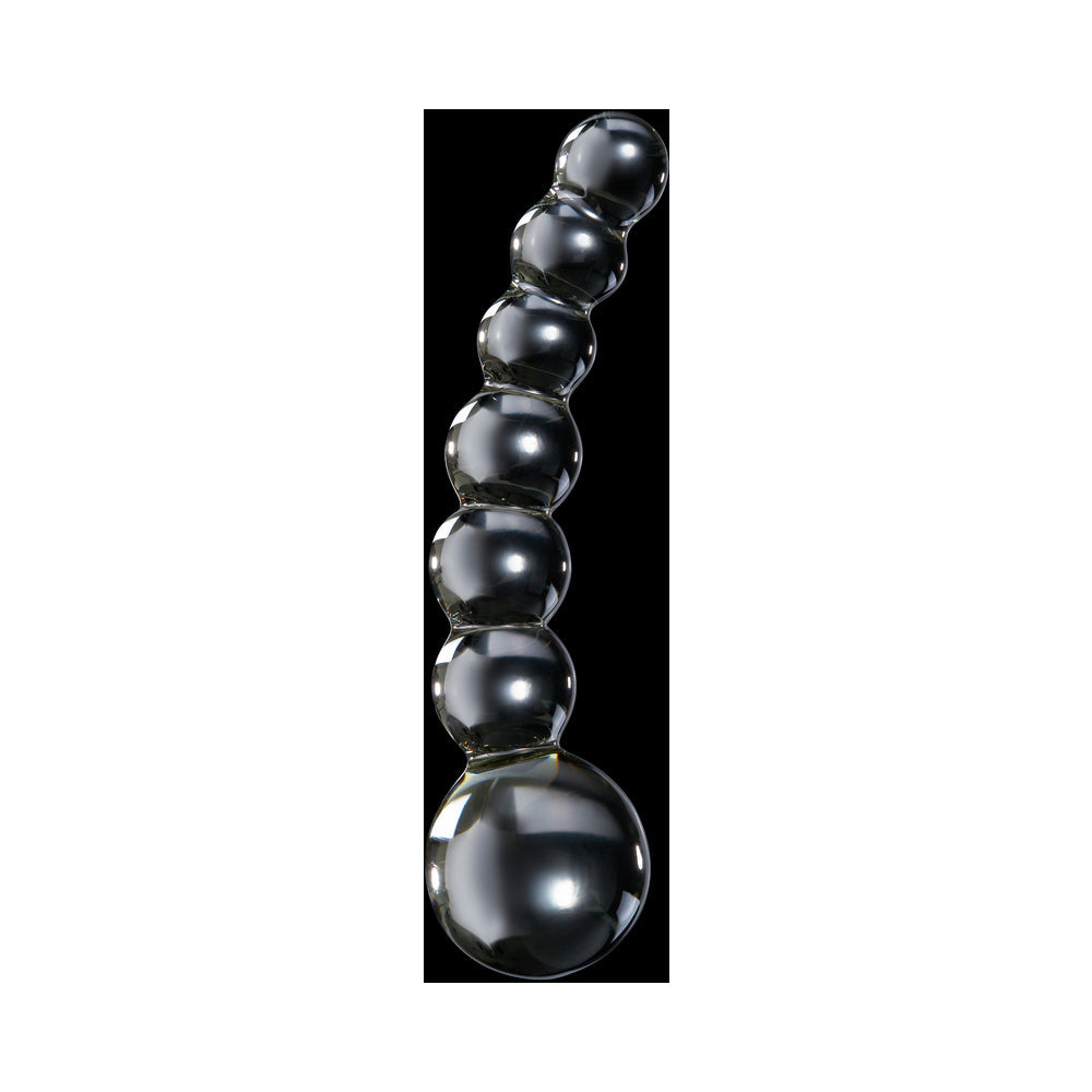 Elegant, upscale, and hand crafted with amazing attention to detail, this luxurious line of glass massagers will leave you breathless. Each hand blown Icicle glass wand is sleek, unique, and made to play hard.This elegant glass wand features a graduated beaded shaft, allowing you to comfortably ease into its size. The bulbous texture is perfect for penetration, and cleverly curved for explosive G-Spot and P-Spot stimulation.The hypoallergenic glass is nonporous and body safe, and when cared for properly, is designed to last a lifetime. Run the wand under warm water of place it in the microwave to heat things up. Chill it under cold water or put it in the freezer for a cool sensation.Insertable length is 4.75 inches, width 1.25 inches.