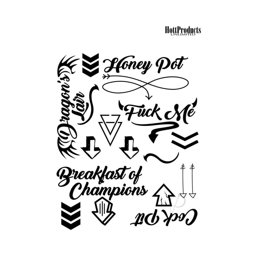 Assorted sayings to give your potential partner a no nonsense sign of what you really desire. Temporary tattoos are easy to apply and remove.