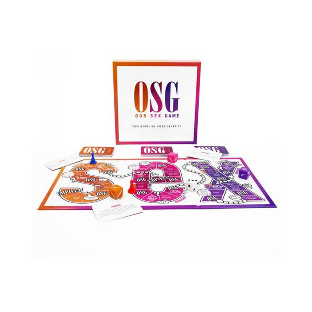 IN SPANISHOSG: OUR SEX GAME is one of access all areas, encouraging stimulating conversations, erotic exploration and experimentation that will leave nothing untouched – literally!On a board that sensually spells out S E X, pleasure intensifies from Seductive to Erotic and onto X-rated as you advance from one letter to the next. With each progressively steamy level, roll to discover what you’ll be doing, where you’ll be doing it, and who reaps the rewards! The board is also loaded with OSG squares where you get to select a card describing increasingly sexy scenarios and intimate actions.Begin by secretly writing down your ultimate sexual fantasy: Play to win as this becomes the winner’s prize!The many random combinations ensure you’ll both enjoy a different experience each time you play. Whatever your journey – it’s sure to be filled with seductive, erotic and x-rated foreplay, building to an explosive climax!*** GENDER NEUTRAL GAME ***