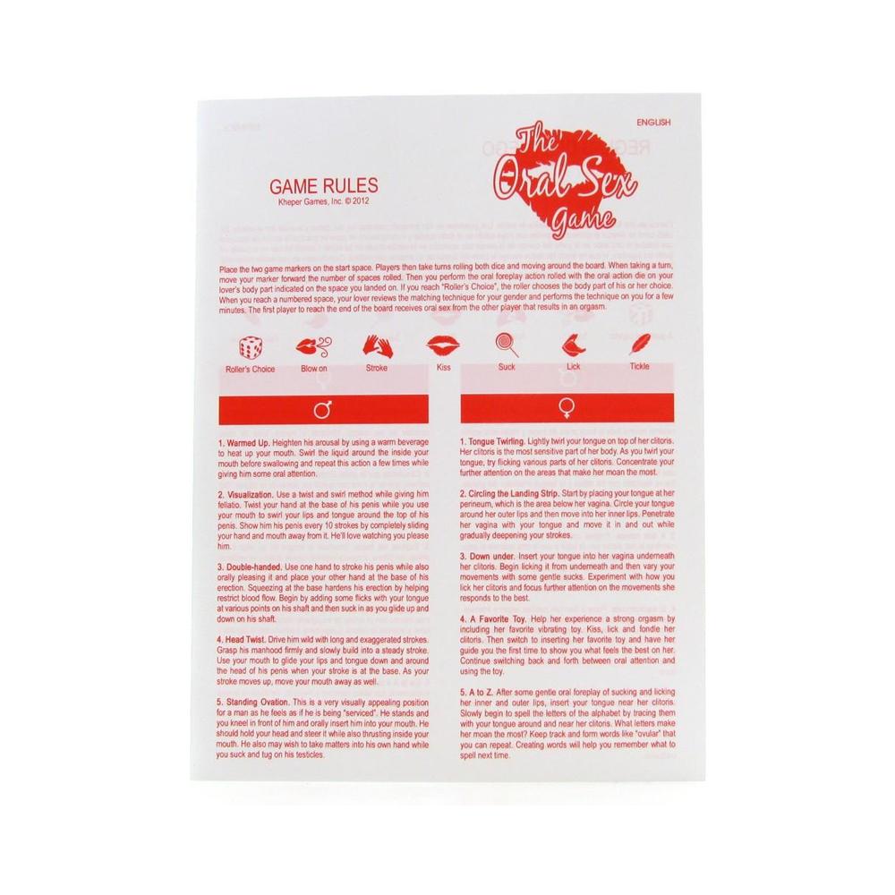 The game for couples who love oral sex. Orally tantalize your lover as you move your marker around the board while engaging in romantic foreplay. The games rules include 5 oral sex techniques for him and 5 for her.