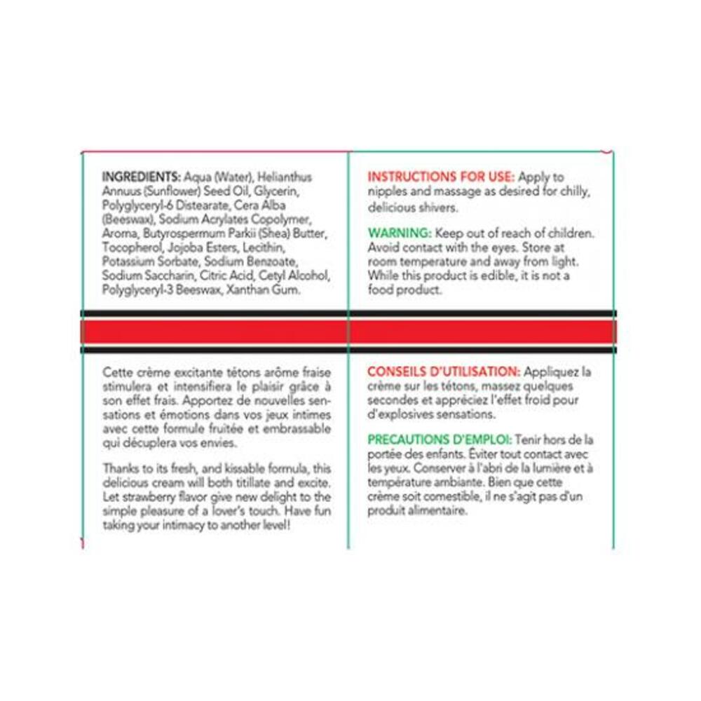 Add a nip of naughty to your night with our Oh My Strawberry Nipple Arousal Cream. This vegan, flavored, paraben free formula is smooth and creamy, lovely for hydrating your skin while producing a gentle tingling sensation you will feel all the way down to your toes! Sugar free. Cooling effect. Gentle tingling sensation. External use only. While this product is edible it is not a food product.