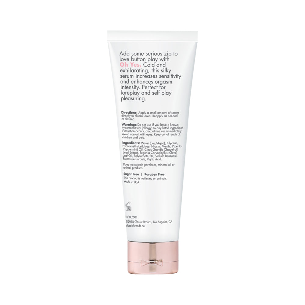 CGC Oh My Clitoral Stimulant Cooling 1 fluid ounce from Classic Erotica. Fragrance free.Add some serious zip to love button play with Oh Yes. Cold and exhilarating, this silky serum increases sensitivity and enhances orgasm intensity. Perfect for foreplay and self play pleasuring. Apply a small amount of serum directly to clitoral area. Reapply as needed or desired. Cooling and tingly serum, ideal for clitoral arousal and enhanced sensation. Formulated to enhance orgasm intensity. Fragrance Free. Ideal for toy, self and couple’s play. This product does not contain gluten or sugar. This product does not contain parabens or mineral oil. This product is not tested on animals. Made in the USA.