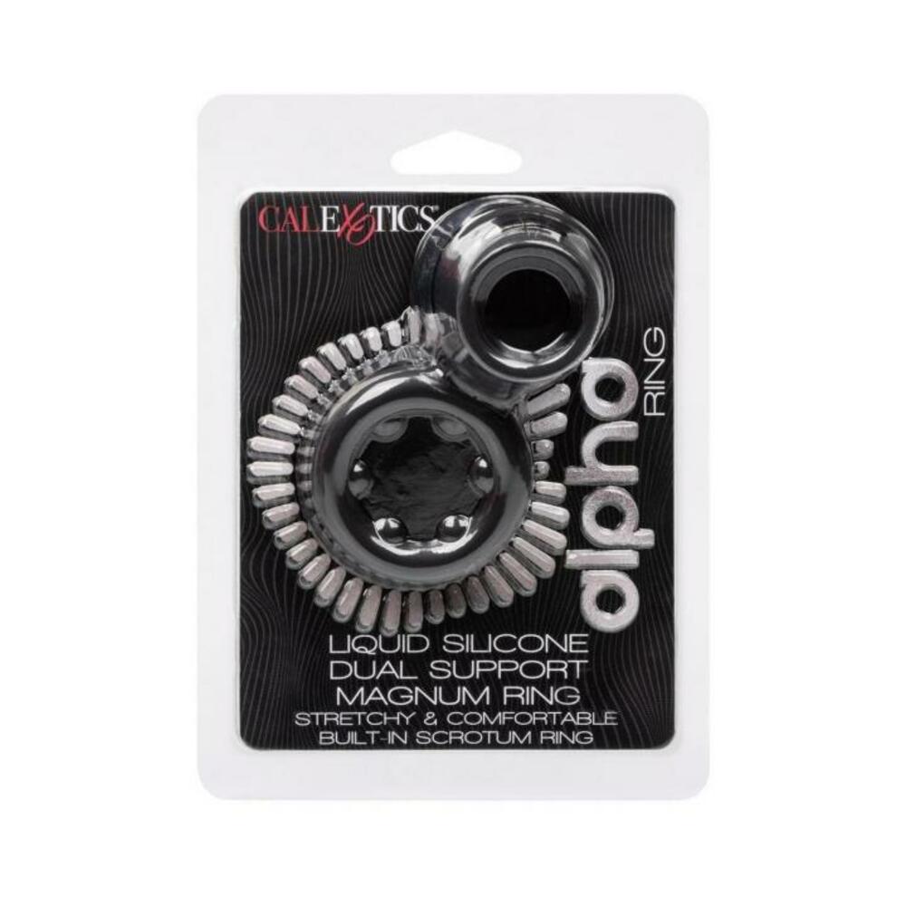 From bashful beginners to erotic experts, the Alpha Liquid Silicone Dual Magnum Ring will wrap you up tight in pleasure with the ultra plush, ultra stretchy enhancer ring. The playful ring is made from an ultra-stretchy liquid silicone with a daring dual ring design. This stretchy, comfortable cock ring is made to increase stamina, improve sensitivity and deliver superior erection support. The durable scrotum support ring lets you indulge even further into increased stamina. Look for an explosive pleasure experience while the plush ring squeezes with every movement. The premium liquid silicone is soft, smooth, durable and waterproof.