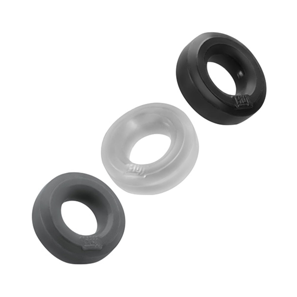 This 3-pack is the best option for customers that use c-rings often. History shows this size ring gets used multiple ways, often more than one at a time. HUJ ring is a c-ring and a ball-ring. Some guy`s stack them for more stretch or for more grip. Designed with flatter inner opening, this keeps the ring from rolling so it won`t snag or pinch. HUJ c-ring has a groove inside the ring that flattens out when worn, this keeps the ring in place and keeps a bit of lube between the ring and the wearer for comfort. Our plus+silicone TPR/silicone blend: silicone for a smooth and warm feel, TPR for amazing stretch and strength. Phthalate free. Dimensions: Width: 2 in. Height: 2 in. Depth: .75 in. Outer Circumference: 6 in. Inner Circumference: 3 in.