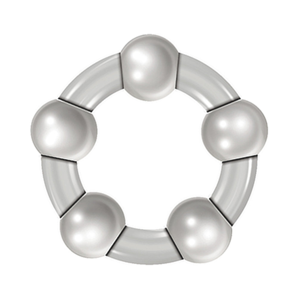Three Amigos Cock Ring Set from the male oriented Zero Tolerance brand gives you more options for longer lasting, harder erections. 3 differently sized beaded rings in one set means you can experiment with finding the perfect fit, or use the size that suits your mood mellow or more sensually daring! Slide the ring to the base of the shaft to experience harder, longer lasting erections and let the pleasure beads gently massage you for added erotic stimulation. Clean with any sex toy cleaner and a warm water rinse. Made from stretchy and pliable waterproof TPE material these beaded penis rings are presented in chic translucent smoke color. Three Amigos Cock Rings measure as following: Small – 1.23 inches (3 cm), Medium – 1.33 inches (3.3 cm), Large – 1.48 inches (3.7 cm). Marvelous 5 year warranty from Zero Tolerance allows men to play harder and get more satisfaction.