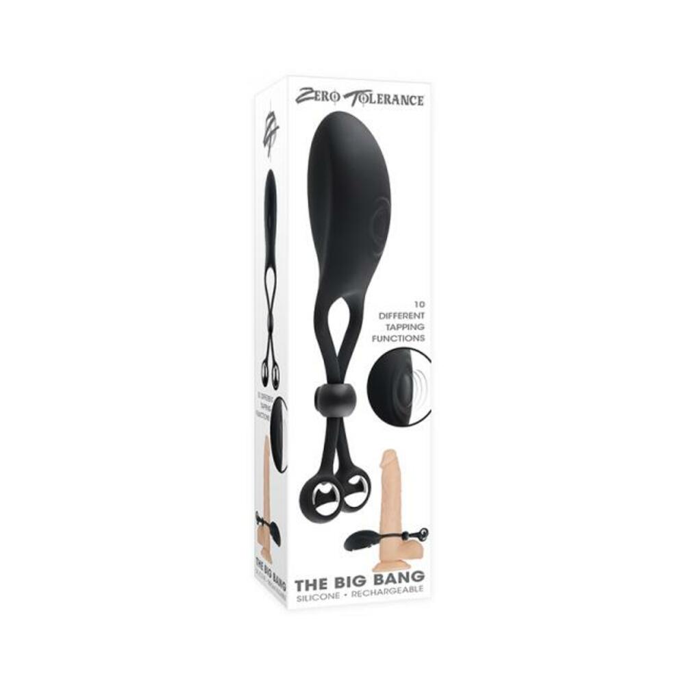 The Big Bang Introducing a unique ring design that`s super comfortable and fiercely titillating. Adjustable silicone straps tie around you like a drawstring and finish with two stainless-steel balls that dangle and massage as they move. The chunky centerpiece features a powerful tapping motor that stimulates in 10 glorious speeds wherever you place it – and the 1-button control is nestled into a stylish chrome-finished plate. Enjoy your long-lasting pleasure underwater as it`s completely submersible, easy to clean, and recharges via USB. Tapping adjustable ring with steel balls Powerful tapping for you or partner 10 different tapping functions Steel balls stimulate andamp; massage as they move Stretchy silicone drawstring for adjustable fit Made from smooth silicone Control plate made from chrome-finished ABS plastic Stainless steel balls remove for cleaning White LED illuminates button when in use Height: 7.25, Depth: 1.63, Width: 1.55 Weight: Under .5 lb Phthalate andamp; latex free Waterproof and submersible Rechargeable, USB cable included