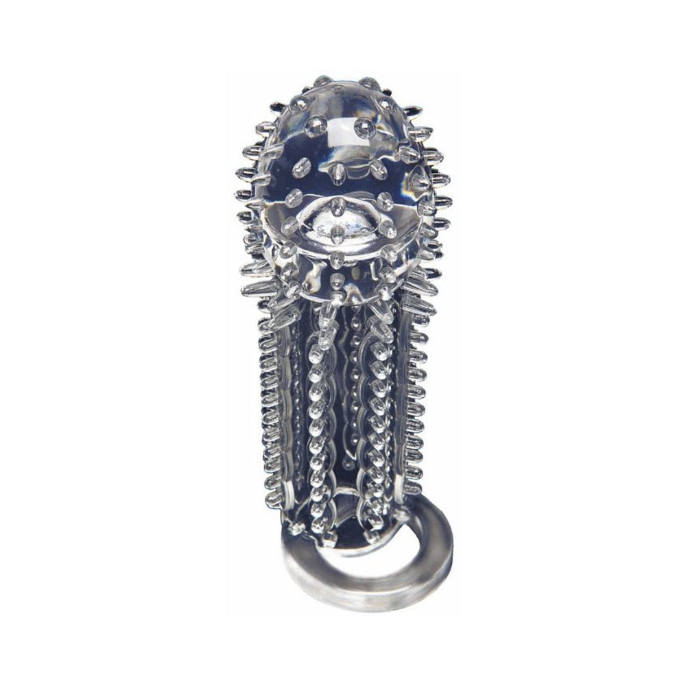 This extension is easy to put on, comfortable to wear, and intensifies enjoyment for both yourself and your partner. The soft and stretchy TPR material hugs your shaft tight while the firm head at the opposite end adds a full inch to your length, and stimulating exterior nubs send your partner to new heights of pleasure. An attached ball strap at the base works like a cock ring to make your erection more powerful and long-lasting. Measures 5.7 in. long, 4.2 in. insertable, 1.6 in. wide.