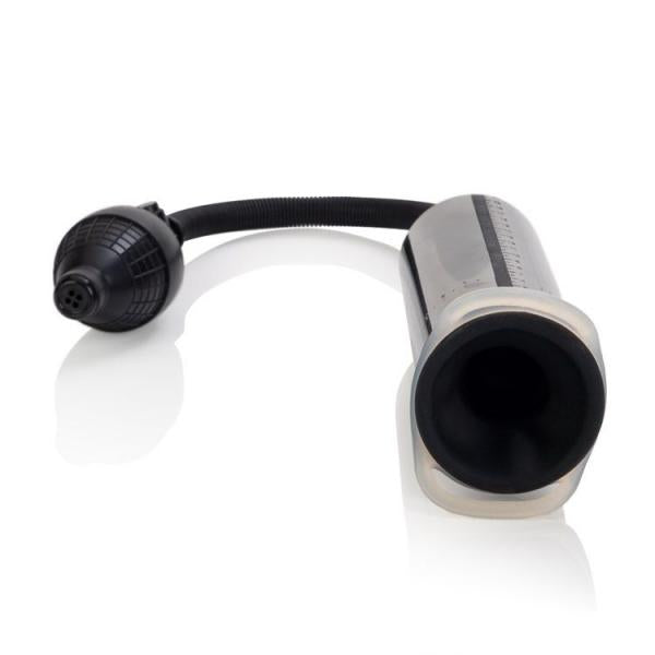Precision Pump brings you a one-step enhancement system to maximize both your pleasure and size with the Precision Pump with Erection Enhancer. 8 inches of length and 2 inches of width are ready to help you pump up your penis to its greatest potential! The smoky, translucent cylinder allows you to enjoy the view as the pump works its magic on your rod. The pump works using a powerful suction system that creates an airtight seal around your penis and increases pressure and blood flow. This allows for firmer erections and, over time, encourages growth in both length and girth. The cylinder’s precise measurement system allows you to track your progress as you pump. Theflexible, non-crimping hose lets you pump comfortably in any position. It’s detachable for effortless cleanup. The black bulb lets you pump pressure into the cylinder with a simple squeeze. When you’re done pumping, a quick release valve immediately releases the suction from your penis. The ribbed latex sleeve at the base of the shaft keeps your manhood comfortable and your seal completely airtight for optimum results. This pump comes with a soft, stretchy Erection Enhancer that can be slipped easily onto the base of the pump’s cylinder. When you’re ready to transition from pump to play, just use the easy-grip handles on the sides of the enhancer to pull it onto the base of your shaft. The enhancer allows you to maintain that rock-hard erection, increases your stamina, and maximizes your sensitivity. Lather on some of the included lube for a top-notch pumping experience and ultimate pleasure. Pump up your erection and supercharge your play at the same time with the one-step pump with Erection Enhancer!Inside measure 7 inches in length with a 1 1/2 inch wide opening Some men swear by the use of pumps as effective tools for increasing size, while others think pumps have no lasting effect. Pumps can extend length while using, but the question is, will the penis return to original size after using? Unfortunately we do not have that answer and can not guarantee or be responsible for any results.
