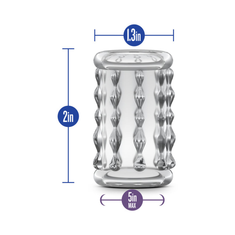 Stretchy and textured enhancement sleeve adds pleasure and sensation. Just slide over your shaft or a dildo. One size fits most. Measures 2.04 inches long, 1.57 inches diameter, 4.92 inches circumference.
