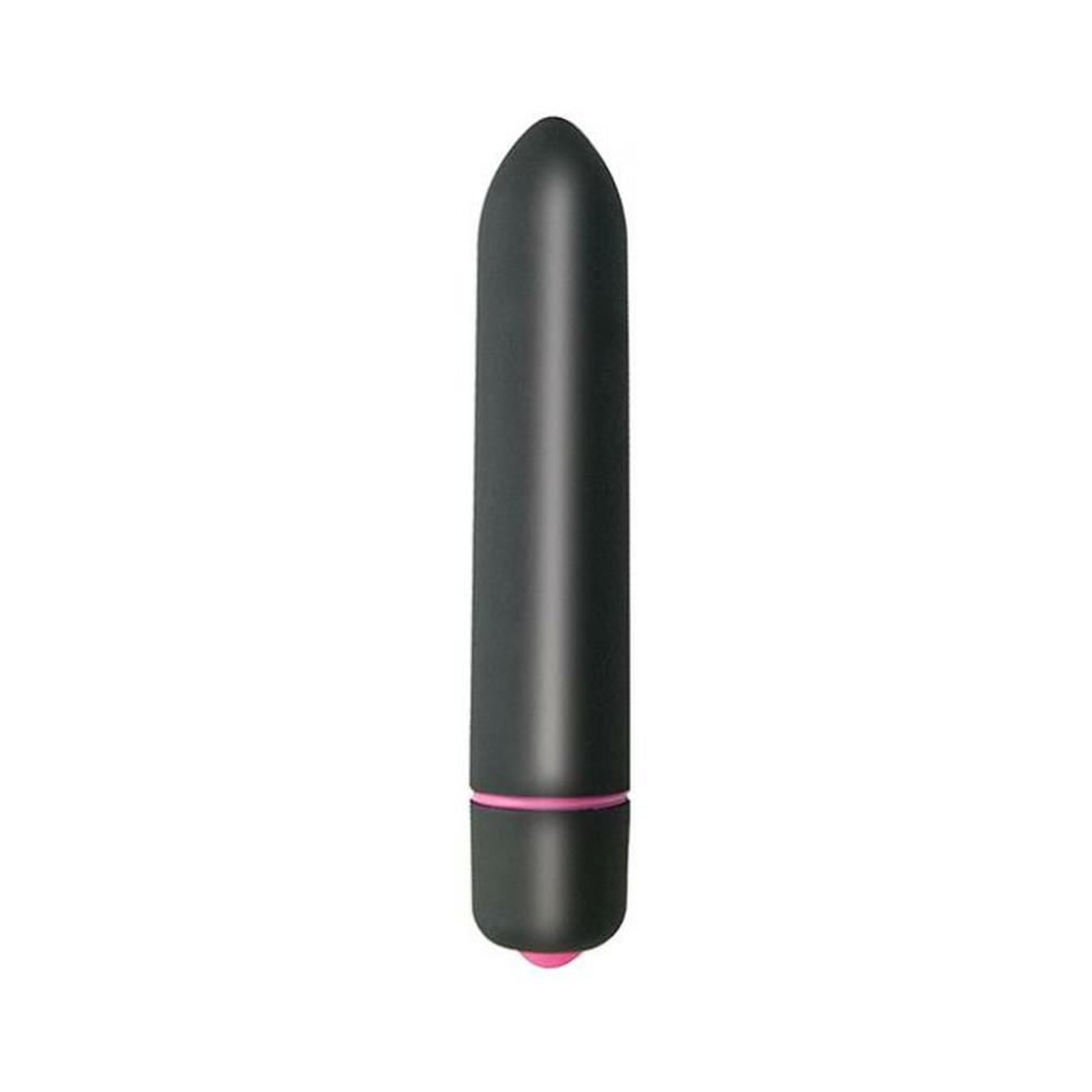 One-speed bullet vibrator features single control to turn on and off. Discreetly quiet, waterproof. Measures 3.25 in. long, 2.5 in. insertable. Requires 1 AAA battery, included.