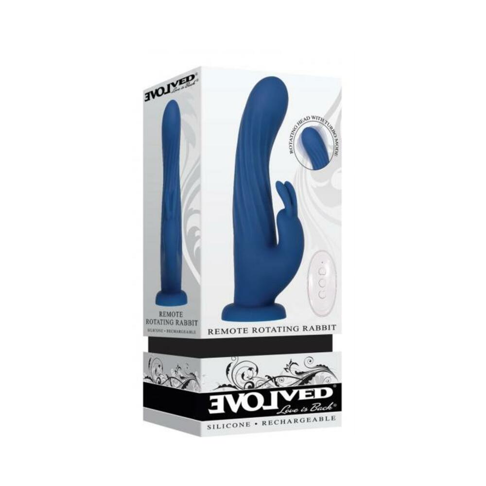 Come full circle with a delicious remote control combo of rotation and vibration! A rotating shaft head gyrates at your favorite of 7 speeds while vibrating rabbit ears turn loose on your clit! The two motors work together to build your desire slow and steady, then when you are ready for more, you can activate the 10-second turbo mode for a max-speed thundering climax! It’s pure pleasure with a unique spin, even underwater as it’s completely submersible. Clean with Evolved Toy Cleaner and warm water. Rotating rabbit vibe with turbo mode 7 rotating head speeds 7 vibrating clitoral rabbit speeds Motors work together Turbo mode for 10 seconds of max power Textured shaft Powerful suction cup base for hands-free play Made from creamy-smooth silicone Remote made from ABS plastic Operate from remote or toy directly LED on toy illuminates buttons when in use Waterproof & submersible Phthalate & latex free Rechargeable, USB cable included Remote uses 1 AAA battery, not included Toy Height: 8.05”, Depth: 3.17, Width: 1.74” Remote Height: 2.82”, Depth: 1”, Width: 1.52” 5.5” insertable length, 1.65” width Weight: Under 1 lb
