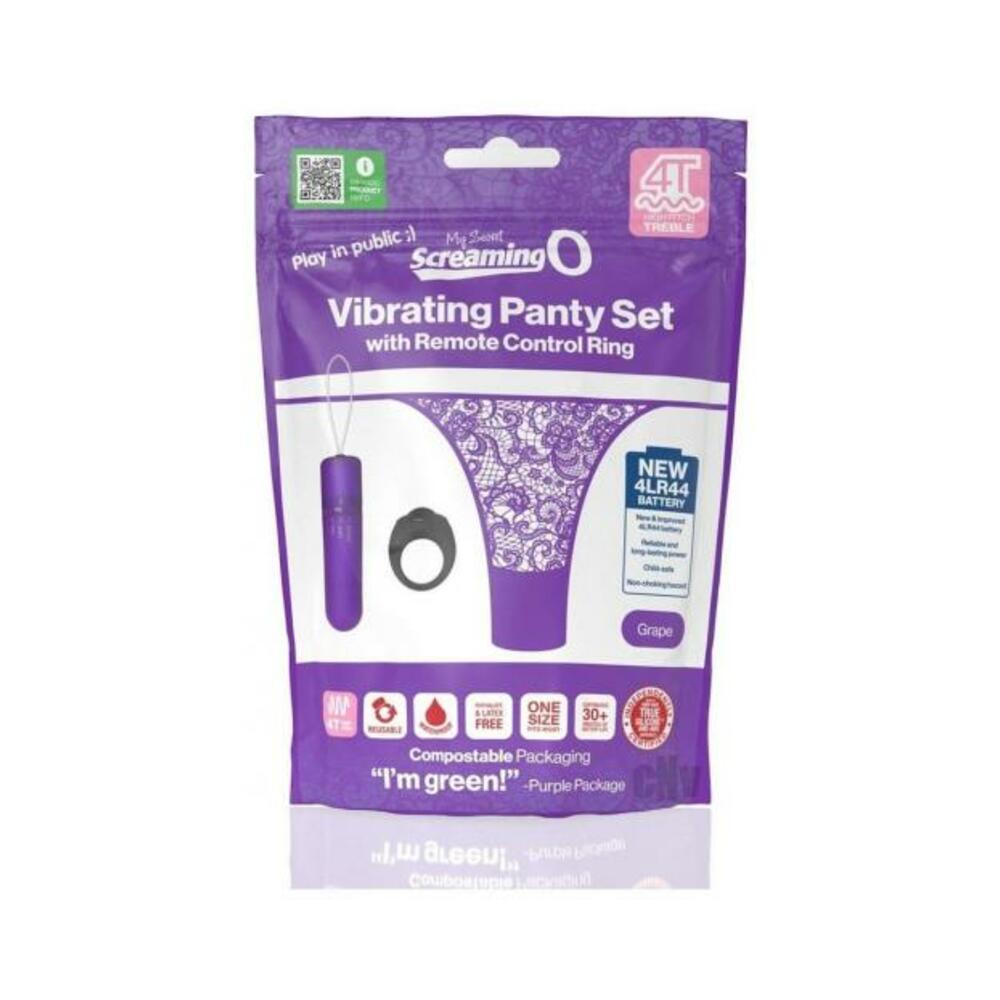 My Secret Screaming O 4T Panty Vibe puts the power of pleasure at your fingertips with a powerful, 4T treble style tickle and tease vibrating bullet that fits discreetly into a side-tie lace panty to keep it in place. Simply slip the bullet into the panty`s small pocket and enjoy powerful stimulation directly on the sweet spot. This sexy and subtle mini vibe allows you play in public with a clever remote control disguised as an ordinary finger ring and works up to 50 feet away! The vibe is monogamous meaning it can only speak to one remote at a time. This way, you always know who is turning you on!